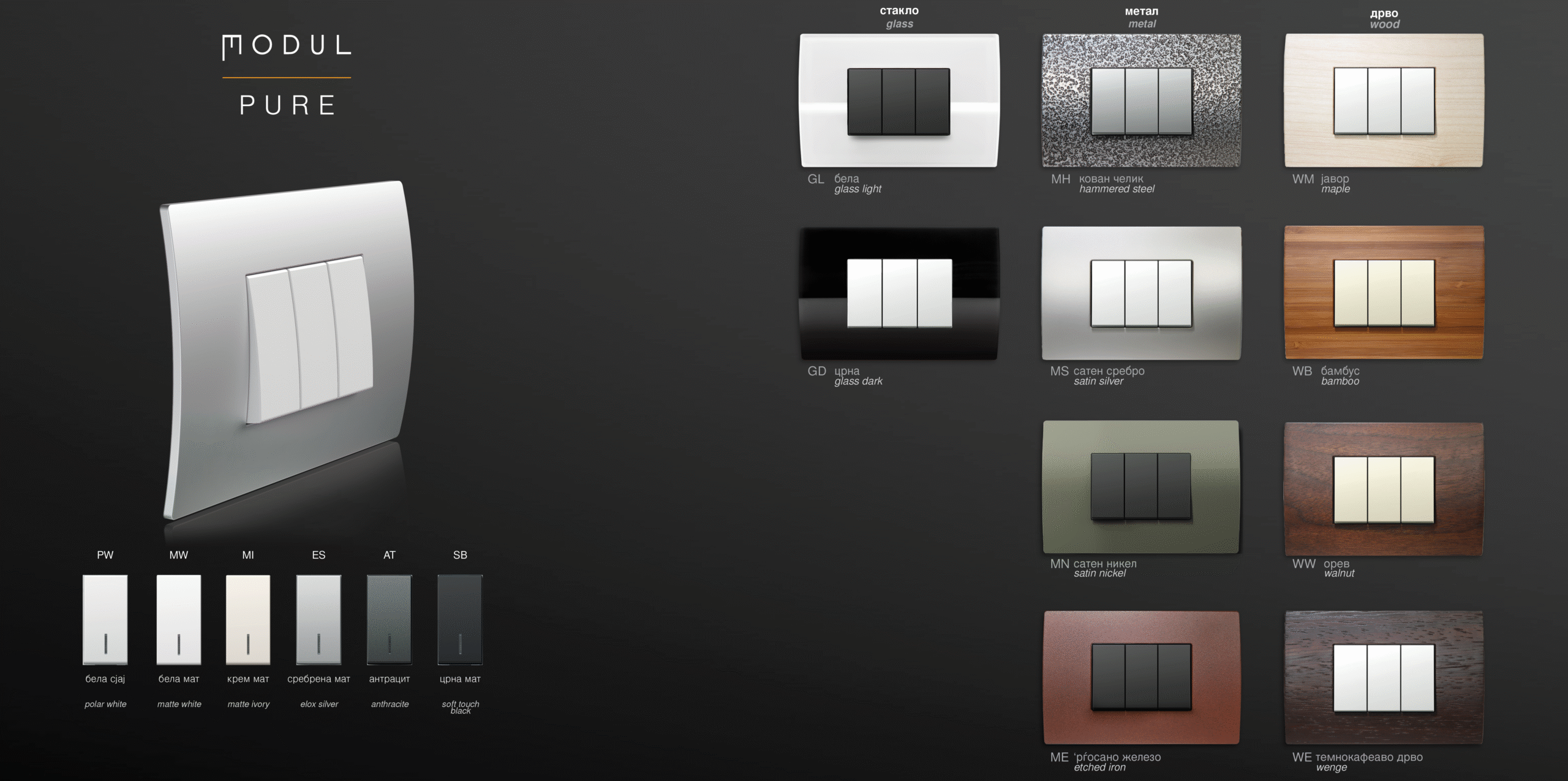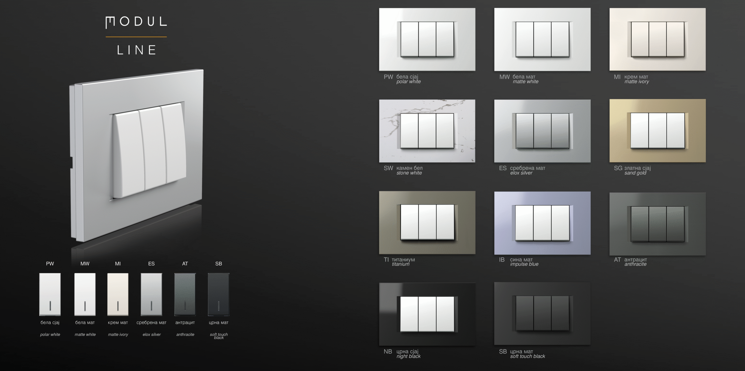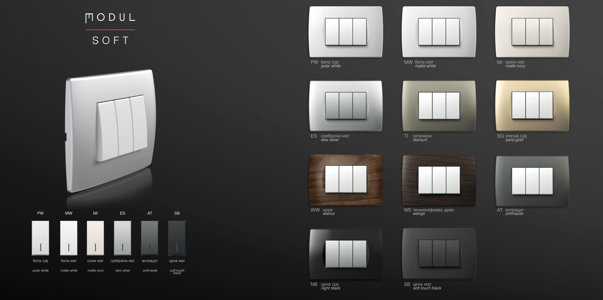Додајте лична нота во вашиот амбиент и нагласете го вашиот стил со прекинувачи и приклучоци од семејството modul.